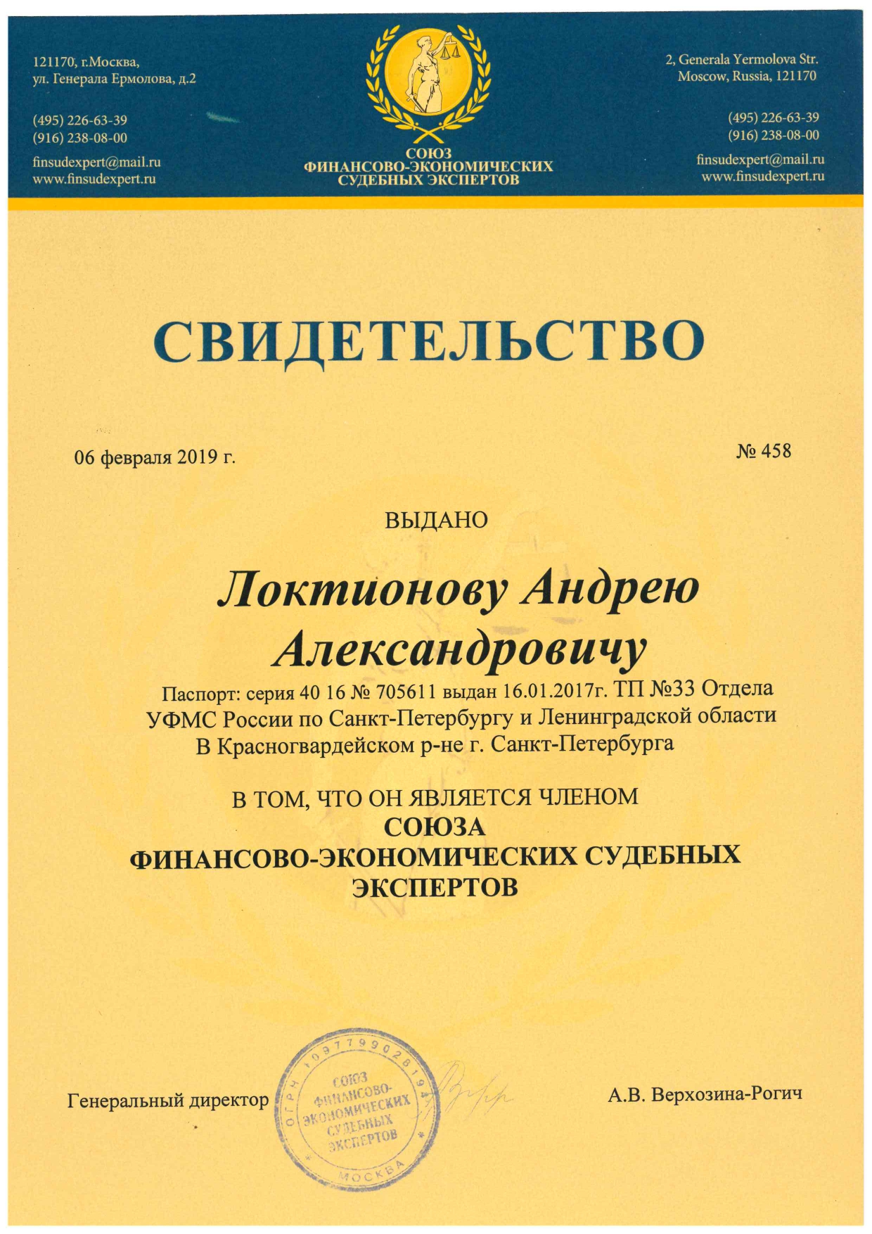 Локтионов Андрей Александрович является членом Союза Финансово-экономических судебных экспертов
